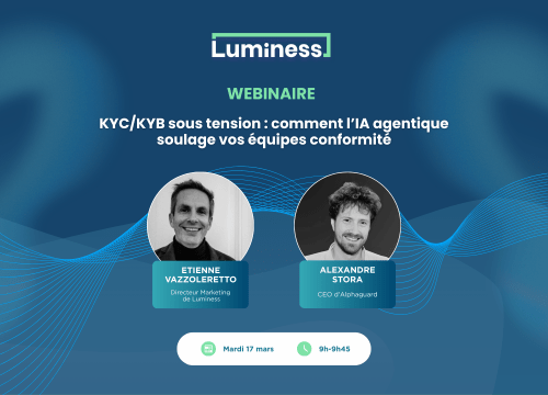 Face au durcissement réglementaire, à l’explosion des volumes de dossiers et à la pénurie de talents, les équipes conformité vivent une transformation profonde. Le mardi 17 mars à 9h00, nous organisons un webinaire dédié à l’un des sujets les plus critiques du moment : la révolution du KYC/KYB à l’ère de l’IA agentique.